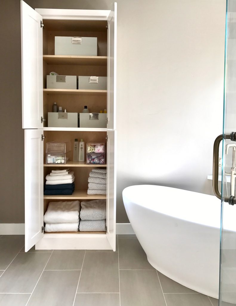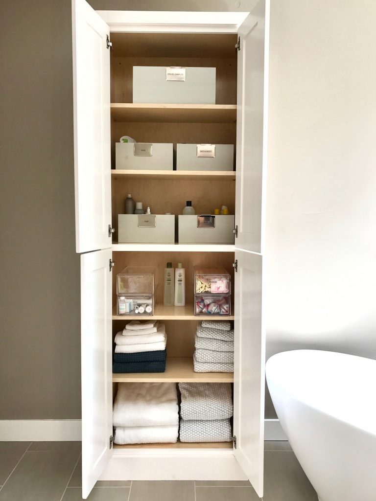 This beautiful master bathroom for 2 was so much fun to organize. Soon enough this family of 3 becomes a family of 4. Nothing I love more than the families who hire me…except when I’m watching them grow.